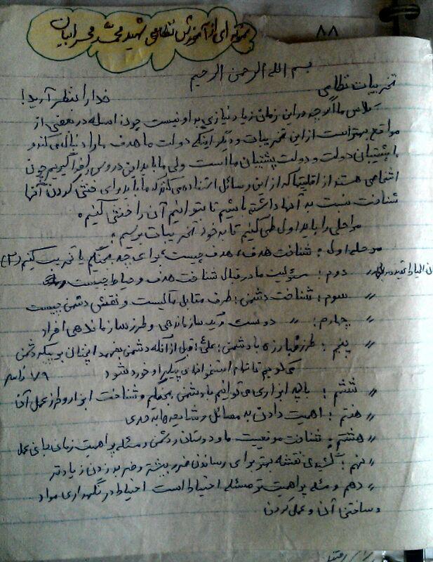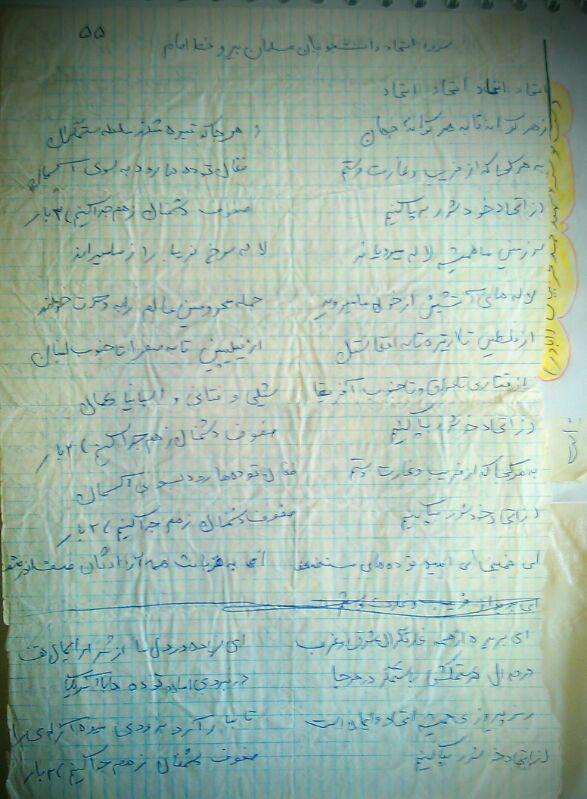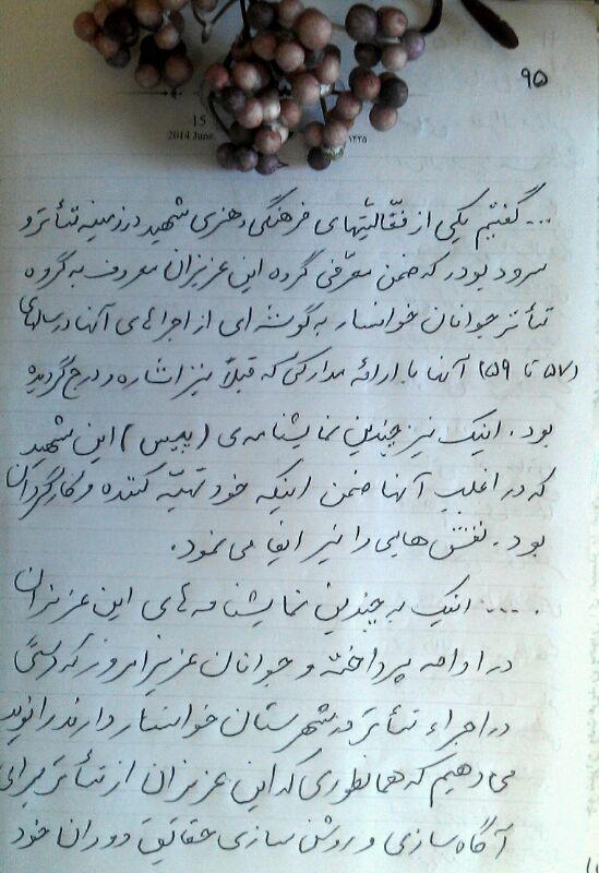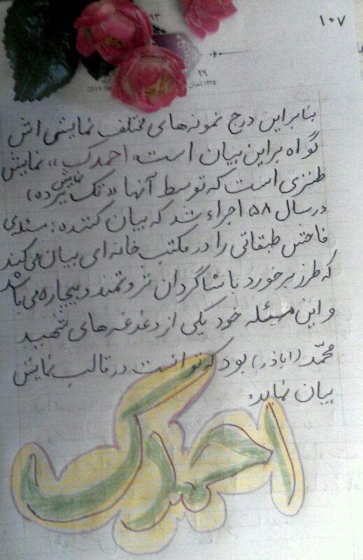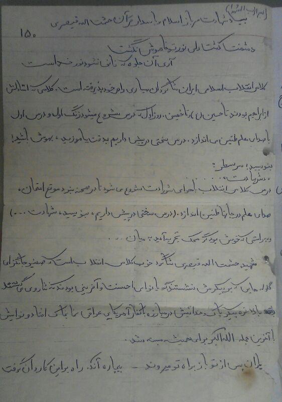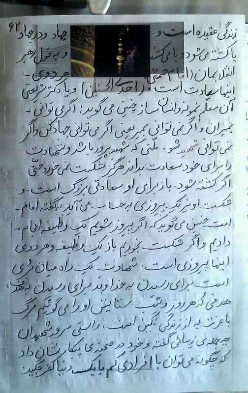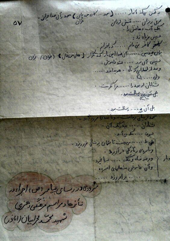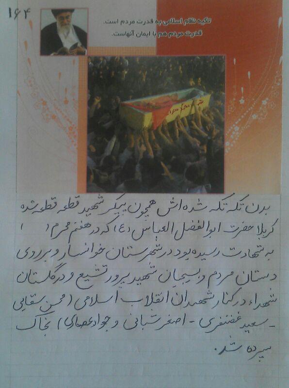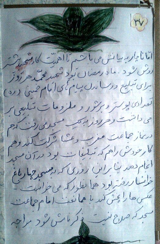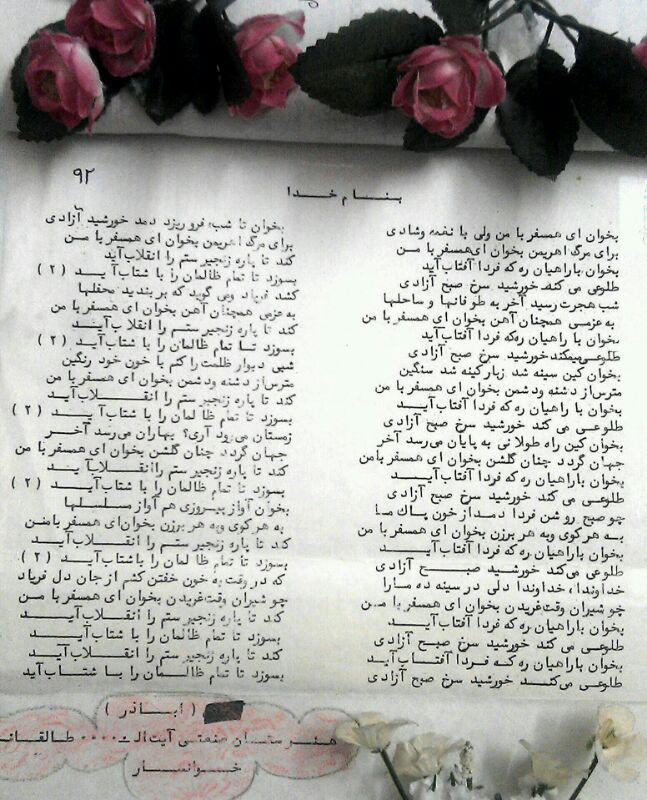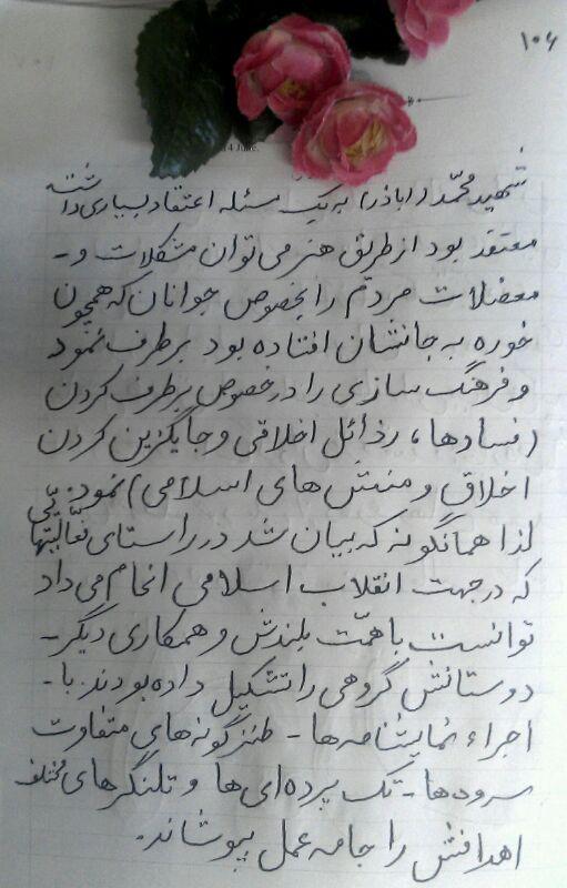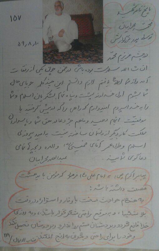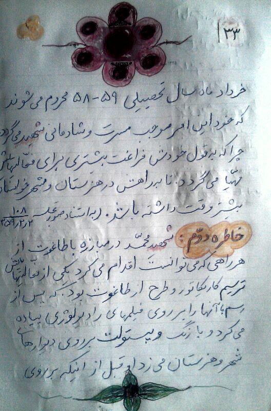 یادنامه ای که از خانواده این شهید والا مقام دریافت شد (۱۷۱صفحه): از بخش های جذاب این ویژه نامه فعالیتهای فرهنگی-هنری این شهید از جمله آرم هایی که طراحی کرده و نمایشنامه های تاترهایی است که نگاشته است. همچنین مکتوب زیبایی که از مرحوم آیت الله طالقانی مرقوم نموده و مبارزاتی که با تفکرات مارکسیستی و التقاطی داشته و یک بخش بسیار جذاب از مصاحبه با مردم روستاهای محروم اطراف خوانسار و تهیه گزارش از آنها.